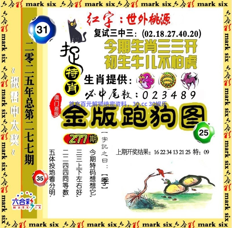 257期【⑦肖中特】:狗虎羊马鼠鸡猴